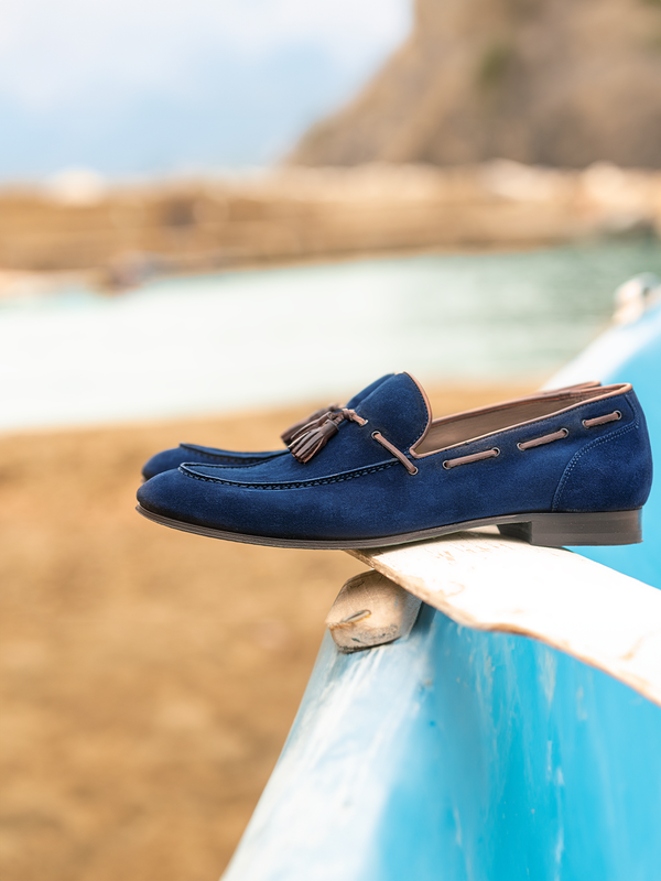 Calzature Dellovo leggere, traspiranti e flessibili, realizzate in suede, nabuk e vitelli morbidi. Qui emergono i mood cool Dellovo, con intrecci artigianali, lavorazioni più ariose, bicolori raffinati e palette cromatiche fresche, pensate per il tempo libero, il viaggio e il relax