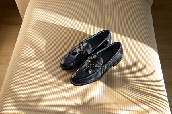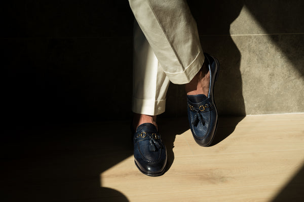 PROCIDA è un loafer estivo dal carattere deciso e raffinato, ispirato alla tradizione artigianale italiana e pensato per l'uomo che desidera uno stile distintivo anche nei contesti business più informali. Realizzato in morbido bufalo lavato e anticato a mano, il Procida si distingue per la grana naturale della pelle, valorizzata da un processo di anticatura che dona profondità cromatica e unicità a ogni paio. La tomaia è impreziosita da cuciture sulla vaschetta e da un morsetto elegante arricchito con nappine in pelle, dettaglio iconico che unisce classicità e personalità contemporanea.