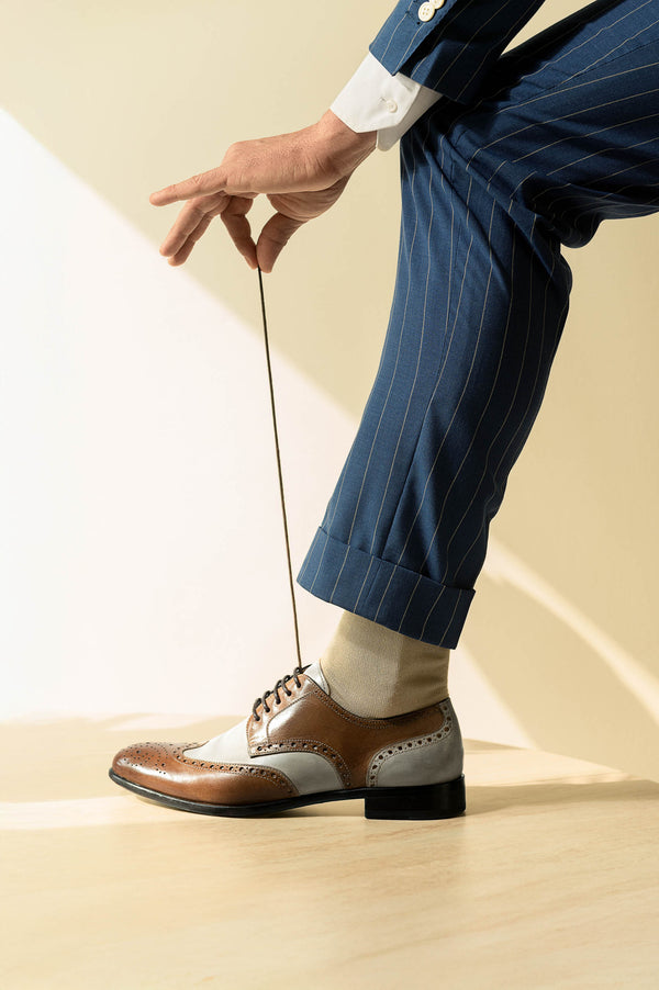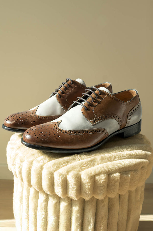 Derby Bicolore in Vitello Anticato con Puntale Brogue
